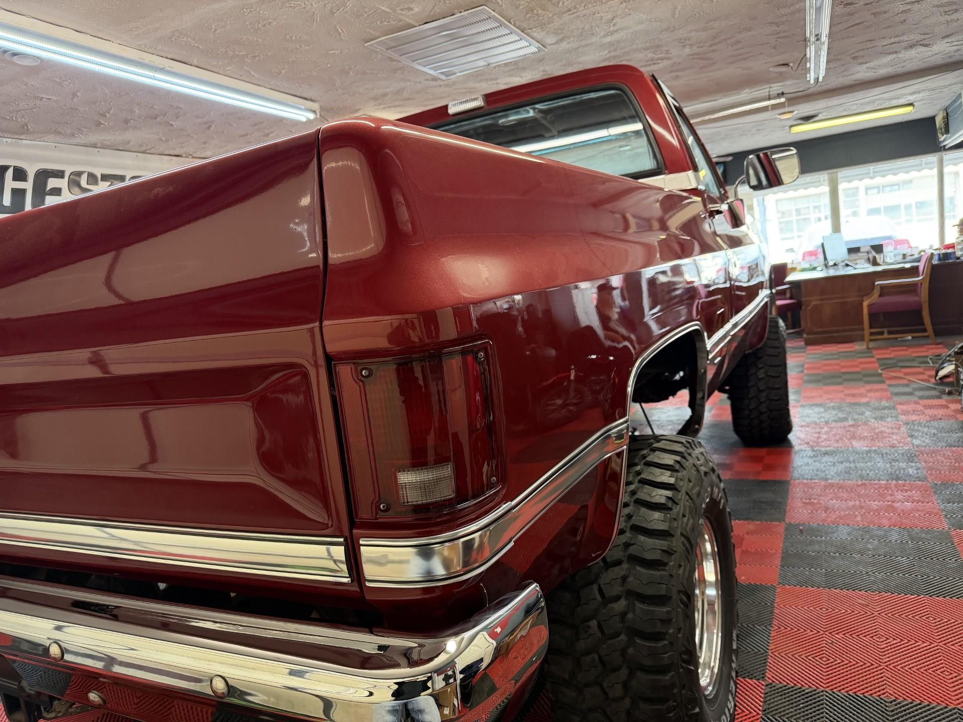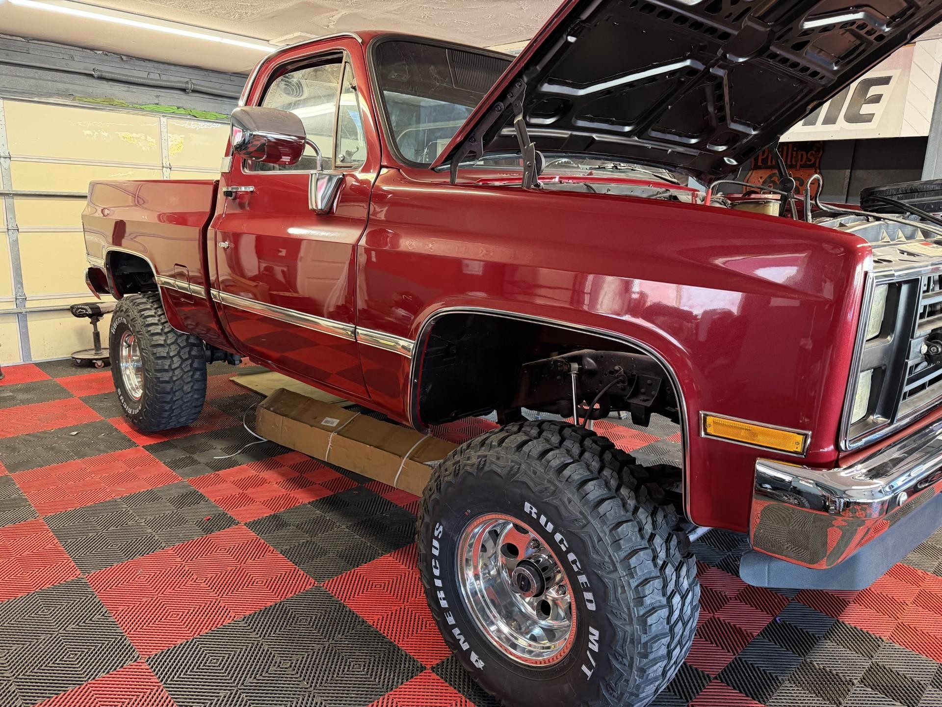4X4 GMC K-10 SHORT BED HIGH SIERRA, LIFT WHEELS AND TIRE, 33/250/15 TIRES, SPRAY IN BED LINER, 350 SMALL BLOCK, AUTOMATIC POWER STEERING AND BRAKES