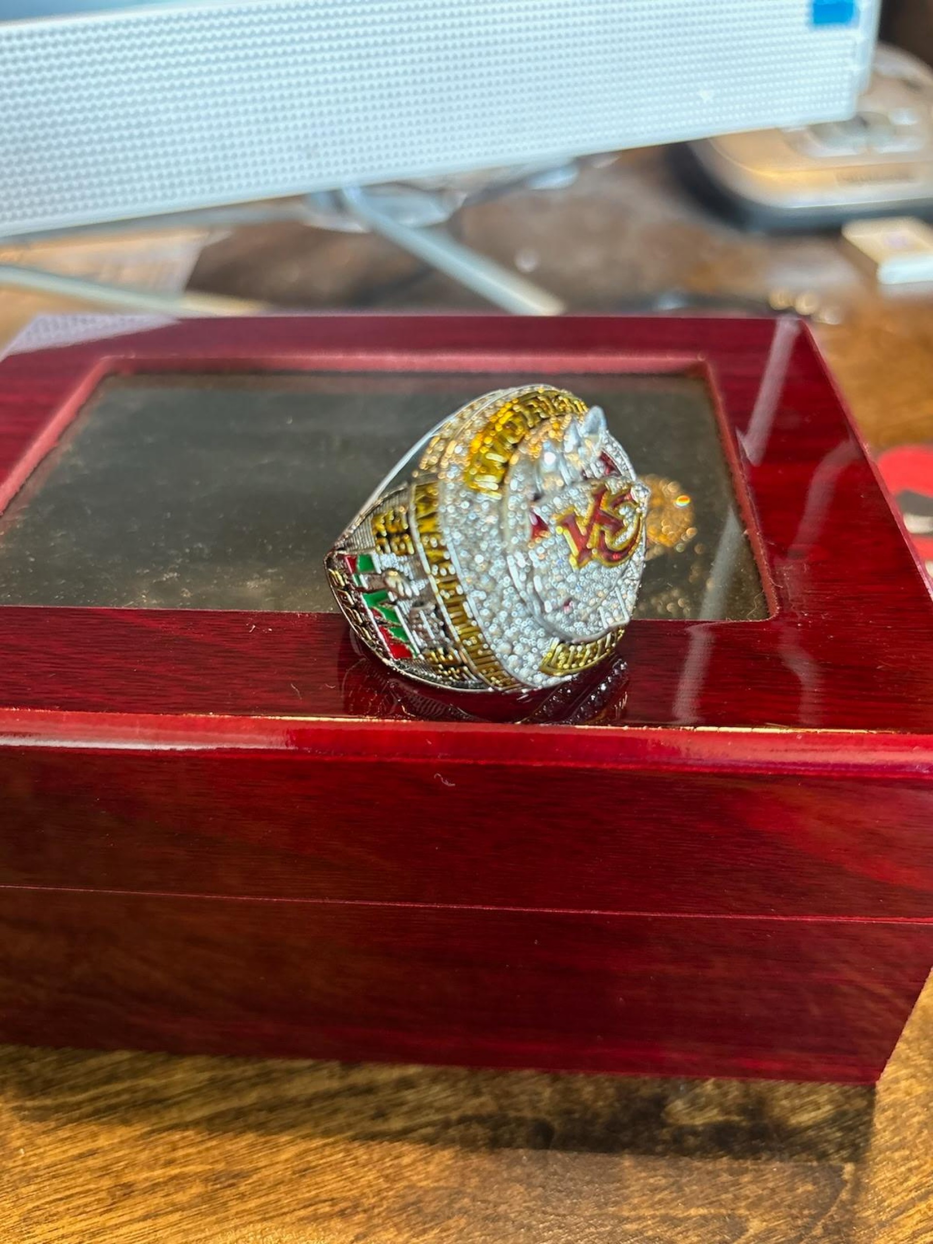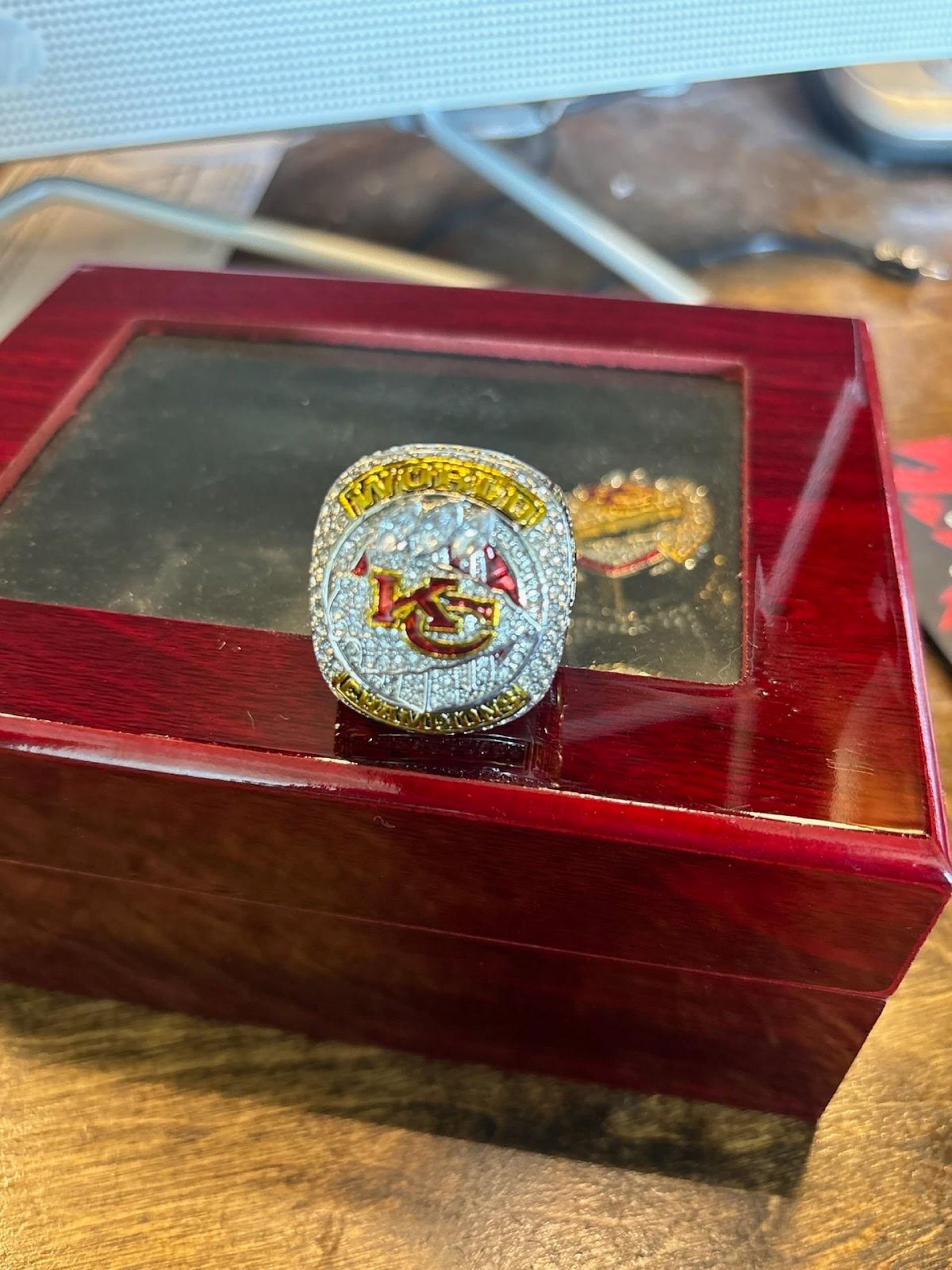 KANSAS CITY CHIEFS, FRANK CLARK # 35 SUPERBOWL RING, STONES ARE CUBIC ZIRCONIAN.